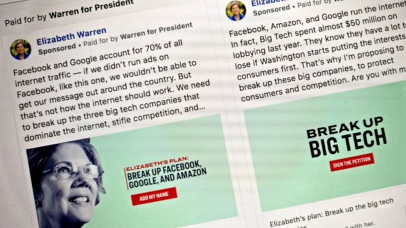 Facebook Pulls Sen. Elizabeth Warren’s Ads on Breaking Up Social Network