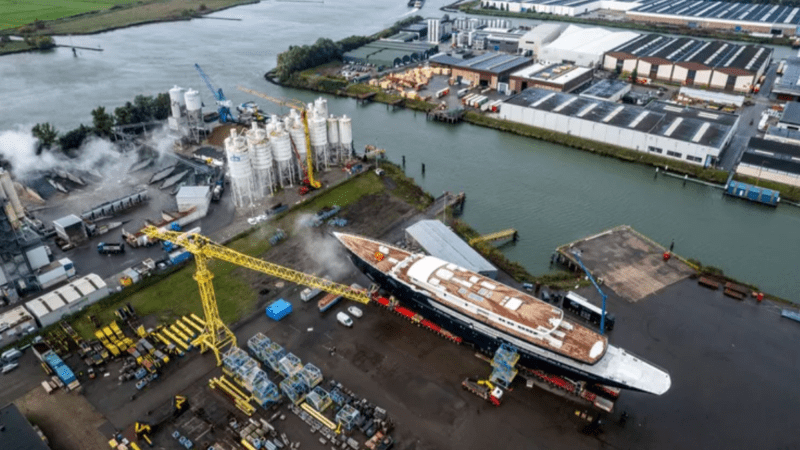 A look at Bezos’ rumored mega yacht in the Oceanco shipyard in August 2022. (via Shutterstock)