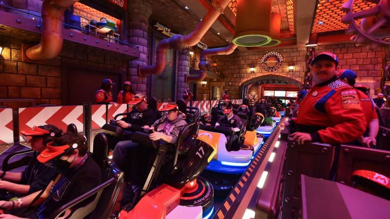 The attraction is meant to be a simulation of the popular video game, giving riders VR headsets as they cruise through the track in Mario’s classic kart in a race against the infamous villain, Bowser.