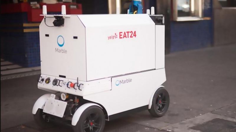 The latest autonomous robots to hit the streets with food delivery orders are from Marble, a San Francisco startup that is partnering with Yelp to navigate crowded city streets and deliver your pad thai before it gets cold.