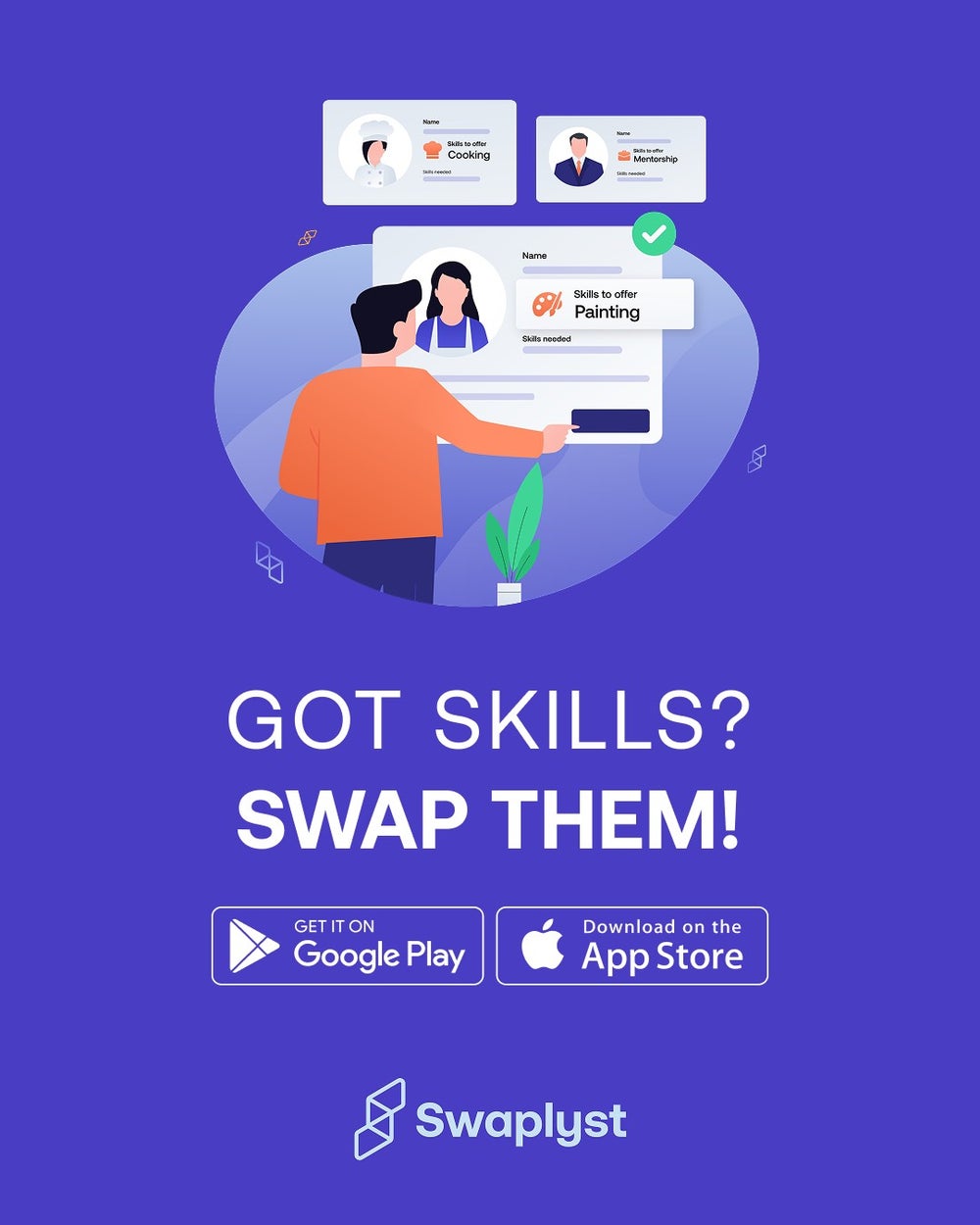 Swaplyst evolves the original concept into a modern platform driven by AI and natural language processing, offering a streamlined matching experience inspired by the ease of social apps but built around purpose, skill-sharing, and meaningful contribution.