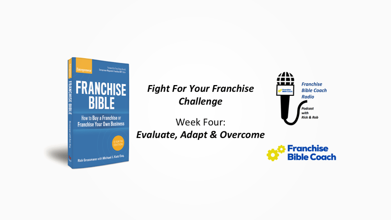 He shared two examples of clients that exemplify the Evaluate, Adapt and Overcome strategy: ERA, or Expense Reduction Analysts, and Class 101. Both organizations have been moving forward through this time and adapting to fight the good fight. You can hear the complete podcast along with more information on the other week-four resources by joining or continuing your Fight for Your Franchise Challenge at www.franchisebiblecoach.com.