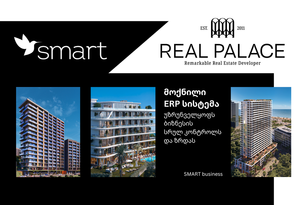 თბილისსა და ბათუმში ღირსშესანიშნავი უძრავი ქონების დეველოპერმა, Real Palace-მა SMART business Georgia-სთან პარტნიორობით წარმატებით დაასრულა ERP სისტემის დანერგვის პროექტი, რომლის მიზანიც იყო ყველა ფინანსური და ოპერაციული პროცესის ერთ პლატფორმაზე გაერთიანება.