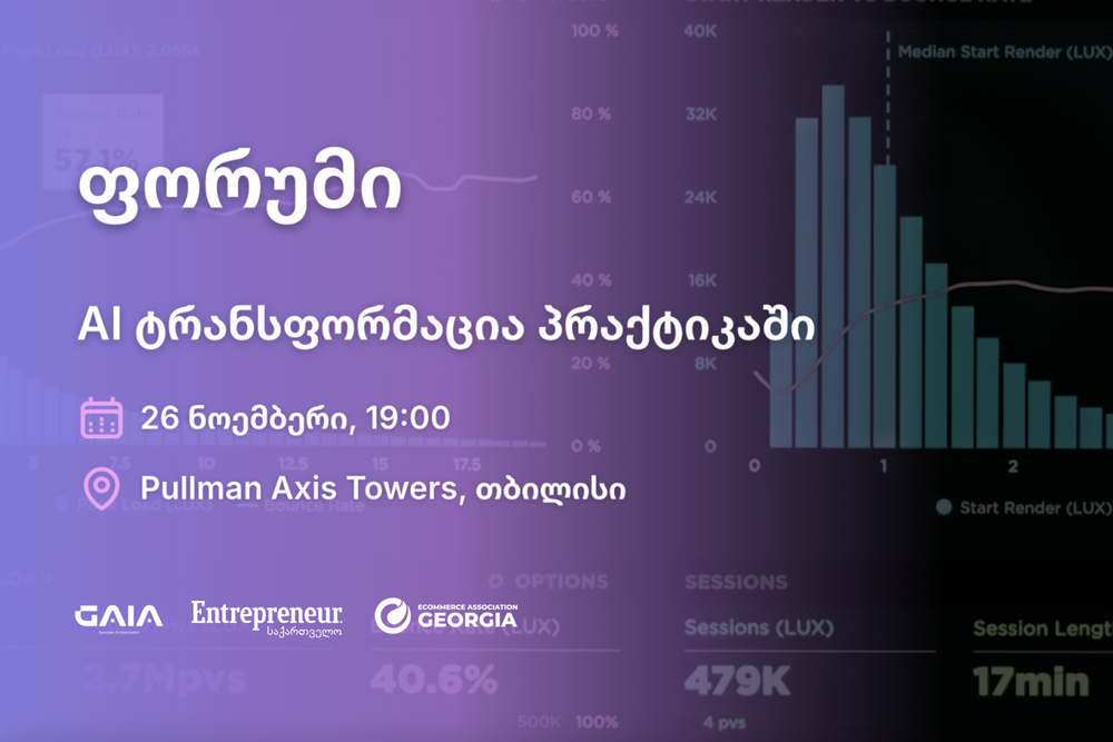 26 ნოემბერს, 19:00 საათზე, სასტუმრო Pullman Axis Towers-ში ჩატარდება ფორუმი "AI ტრანსფორმაცია პრაქტიკაში: მოუწესრიგებელი მონაცემებიდან — სწორ ბიზნეს გადაწყვეტილებებამდე".
