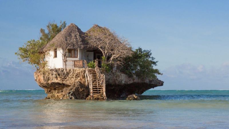 The Rock, located off the southeast coast of Zanzibar, is aptly named. Built on top of a massive rock in the Indian Ocean (which was originally used as a fisherman’s post), the restaurant opened in 2010 and is accessible by foot . . . at least, during low tide. Otherwise, the restaurant offers a boat to shuttle you across the water.
