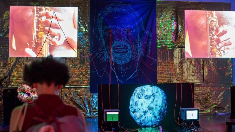 Artist Benedict Drew’s exhibition “KAPUT” is now on display at Walker Art Gallery in Liverpool. The focal point of the exhibit is a large, fluorescent image of Richard Branson, with bright orange cables sticking out from his eyes. The artist describes the exhibition, which is accompanied by music and flickering lights, as “the horrors of the modern world.”