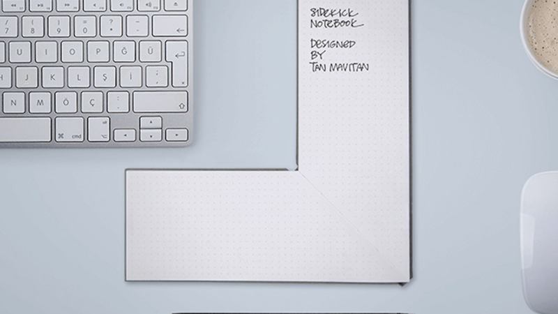 The compact Sidekick notebook unfolds into an L-shape that’s designed to hug the corners of your desk setup just right.