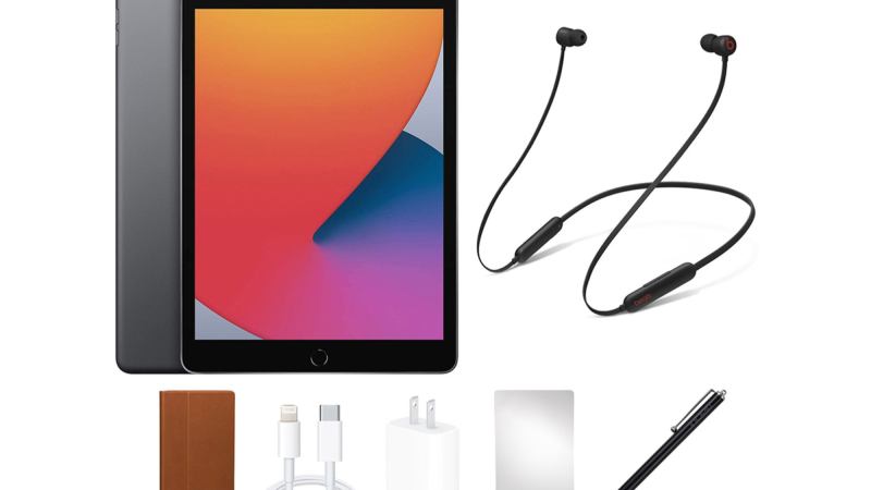 Along with the iPad and headphones, this bundle comes with a case, screen protector, stylus, and all necessary charging accessories.