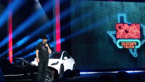 Business News Neon Lights, Fireworks and $90 Merch: Elon Musk Throws Massive ‘Cyber Rodeo’ Party at Tesla Factory Opening Musk took the stage around 10 p.m. to talk about Tesla's past, present and future. By Emily Rella
